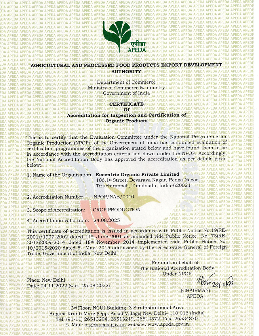 At Eccentric Organic Pvt Ltd., we are more than just a business; we are a passionate team committed to excellence in all that we do. Founded on the principles of innovation, integrity, and customer satisfaction, we strive to exceed expectations and set new standards in our industry.